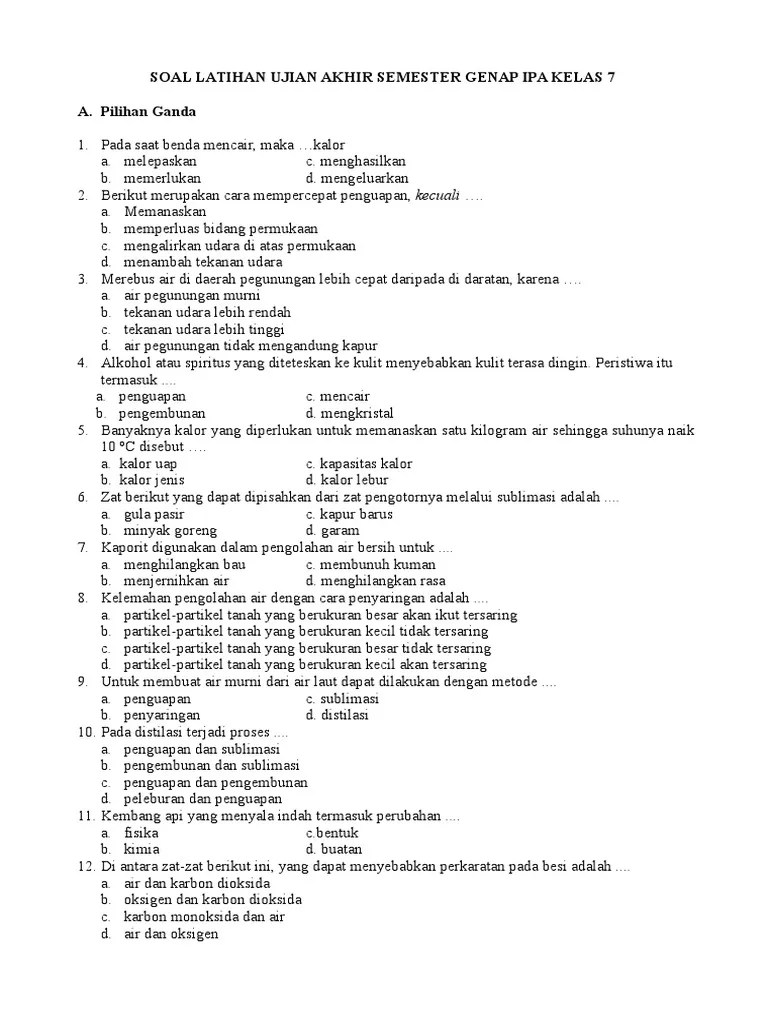 Dari semua mata pelajaran pada latihan soal uh/ph smp kelas 7/vii semester genap yang ini mengacu pada materi pelajaran yang terdapat dalam .